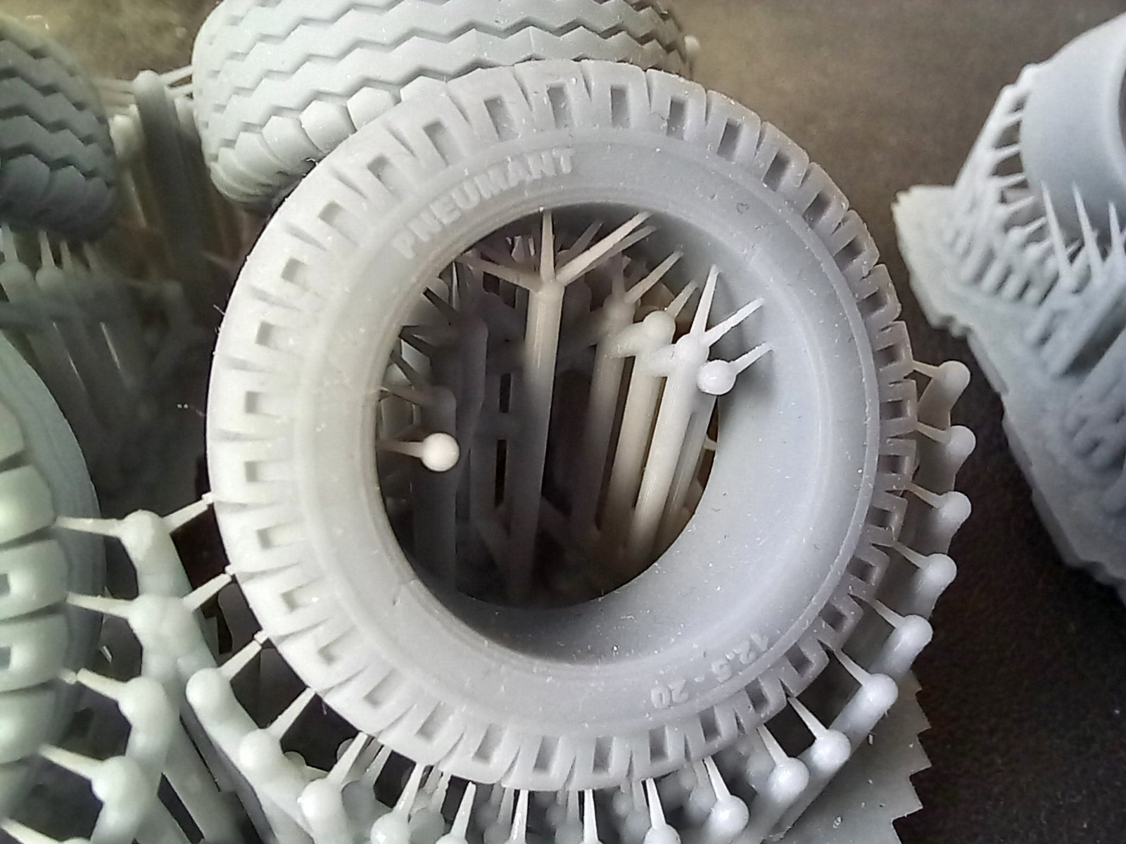 Besonderheiten sind detailliertes Profil, Reifengröße und Reifenmarke auf einer Seite angebracht sowie ein Ventile in der Felge.