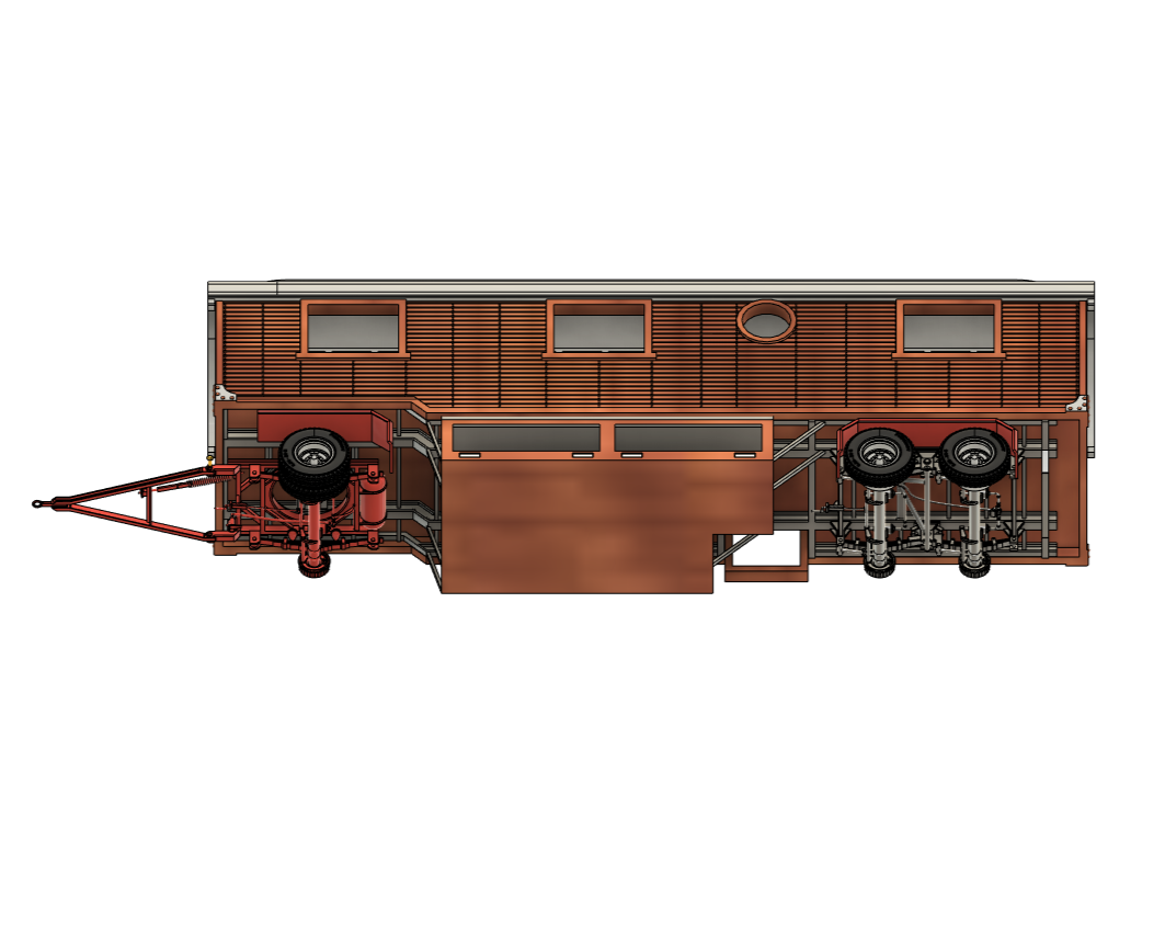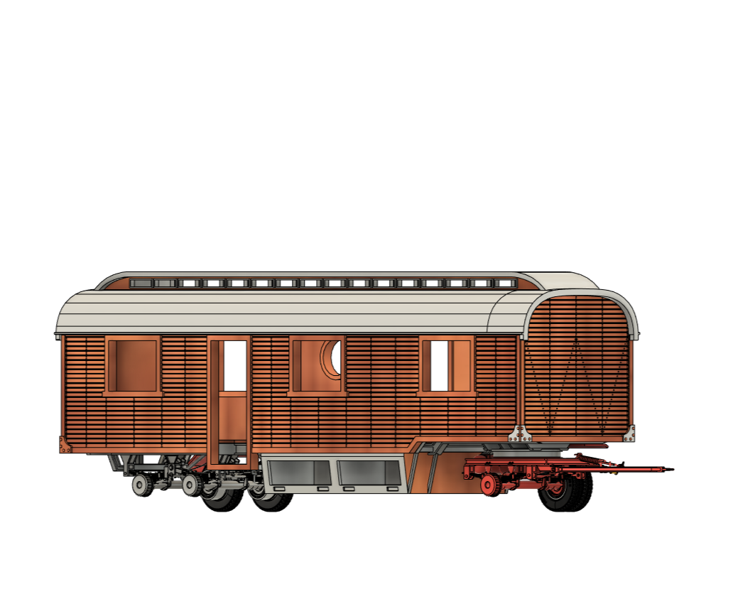 Wagen wird mit Innenausstattung erstellt. Das. Heist Alle Räumlichkeiten, wie Küche, Dusche und Schlafzimmer. dazu gehören Bett, diverse Schränke, Spüle, Herd, Klo etc.
